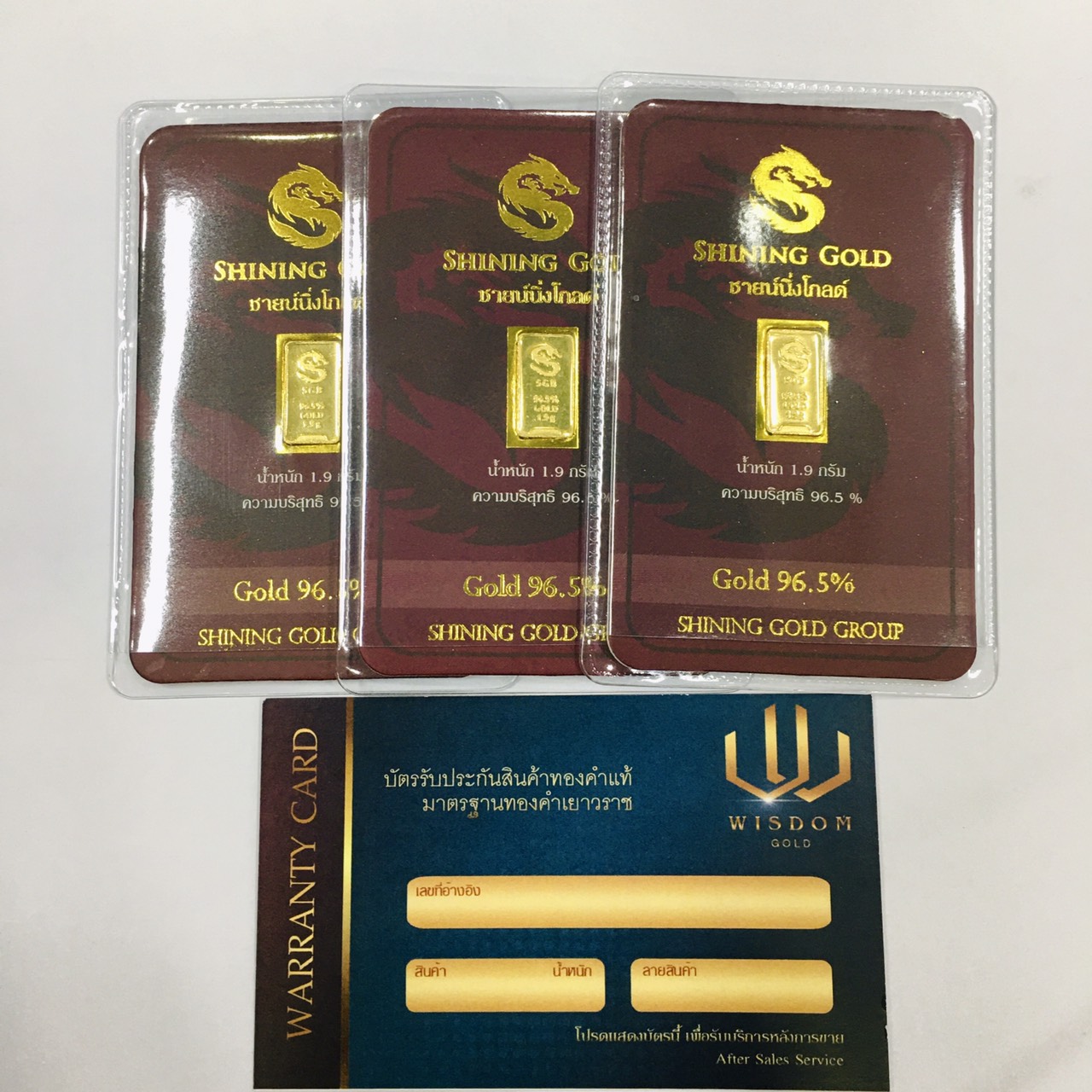 ทองคำแท่ง 96.5%  น้ำหนัก 1.9 กรัม ทองคำแท่งมาตรจากเยาวราช