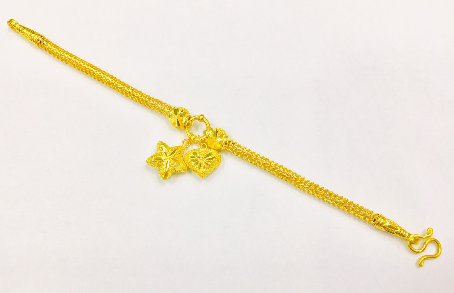 หน้าหลักทองรูปพรรณ 96.5 %สร้อยข้อมือทอง1 บาท สร้อยข้อมือทอง | 1บาท | เก็ดดาวห้อยดาวหัวใจ