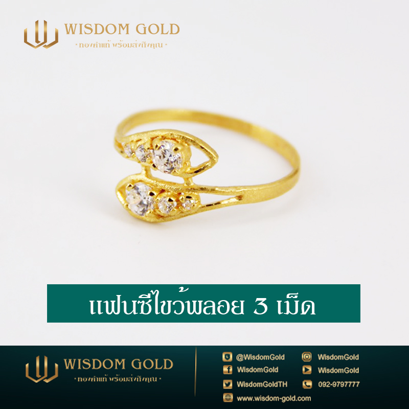 • ชื่อลาย : แหวนแฟนซีไขว้พลอย 3 เม็ด